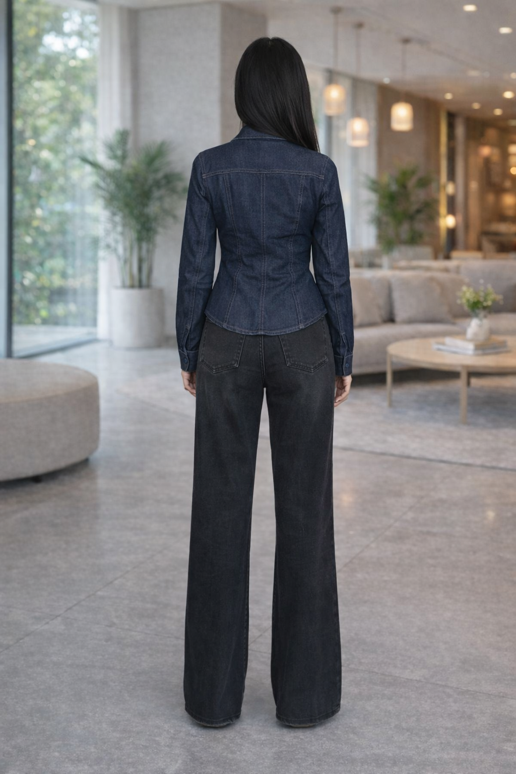 Pair the Carbon Drift Wide-Leg Denim with a fitted top and heels for a sharp evening look, or style it with sneakers and a relaxed shirt for effortless everyday sophistication.