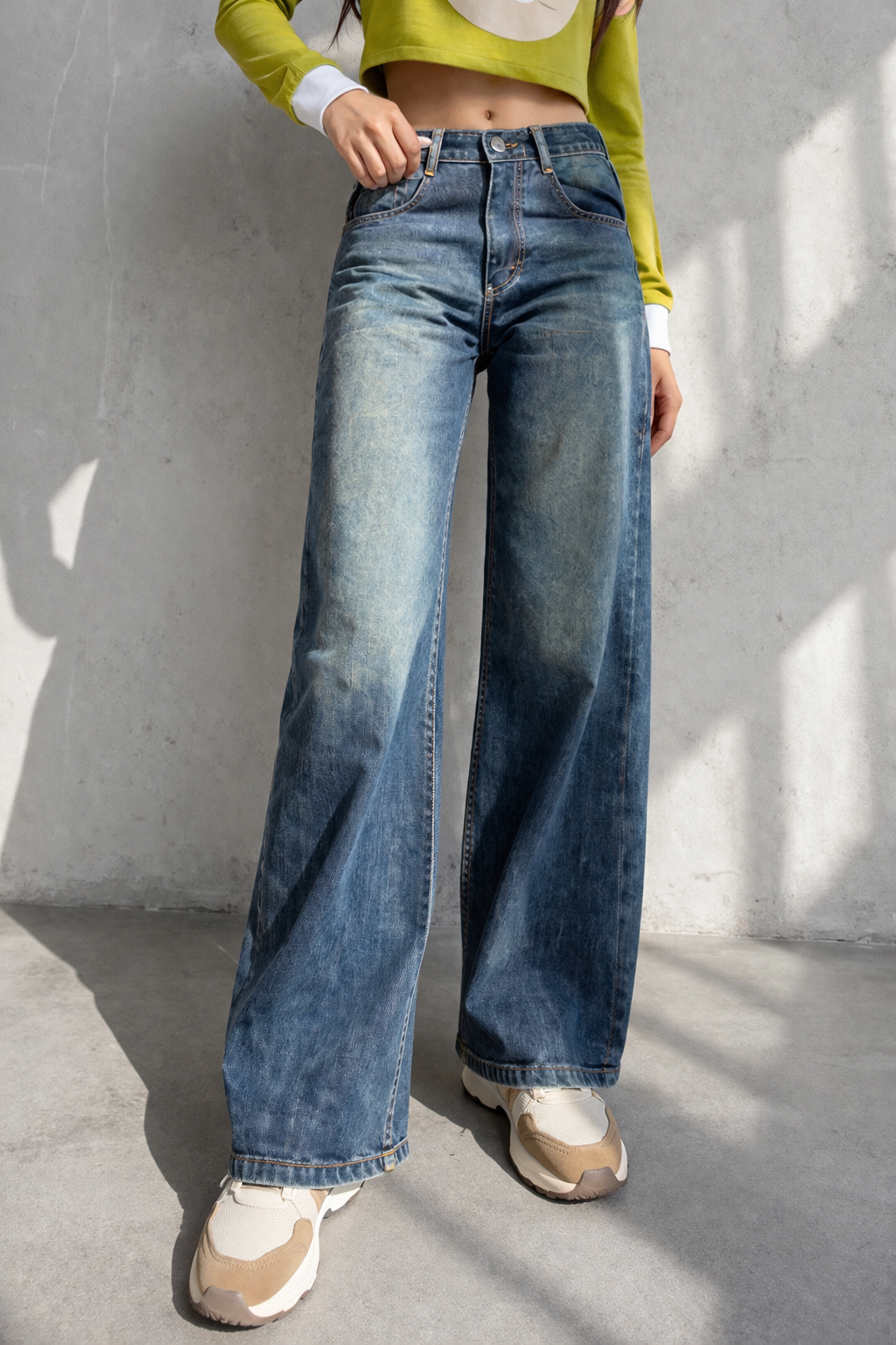 The Liora Mid-Blue Wide-Leg Denim is designed for effortless everyday styling with a modern relaxed silhouette. Crafted in a versatile mid-blue wash, this pair features a flattering high-waist fit and a clean wide-leg fall that creates a balanced, elongated look. The structured yet comfortable design makes it perfect for both casual outings and elevated streetwear styling.