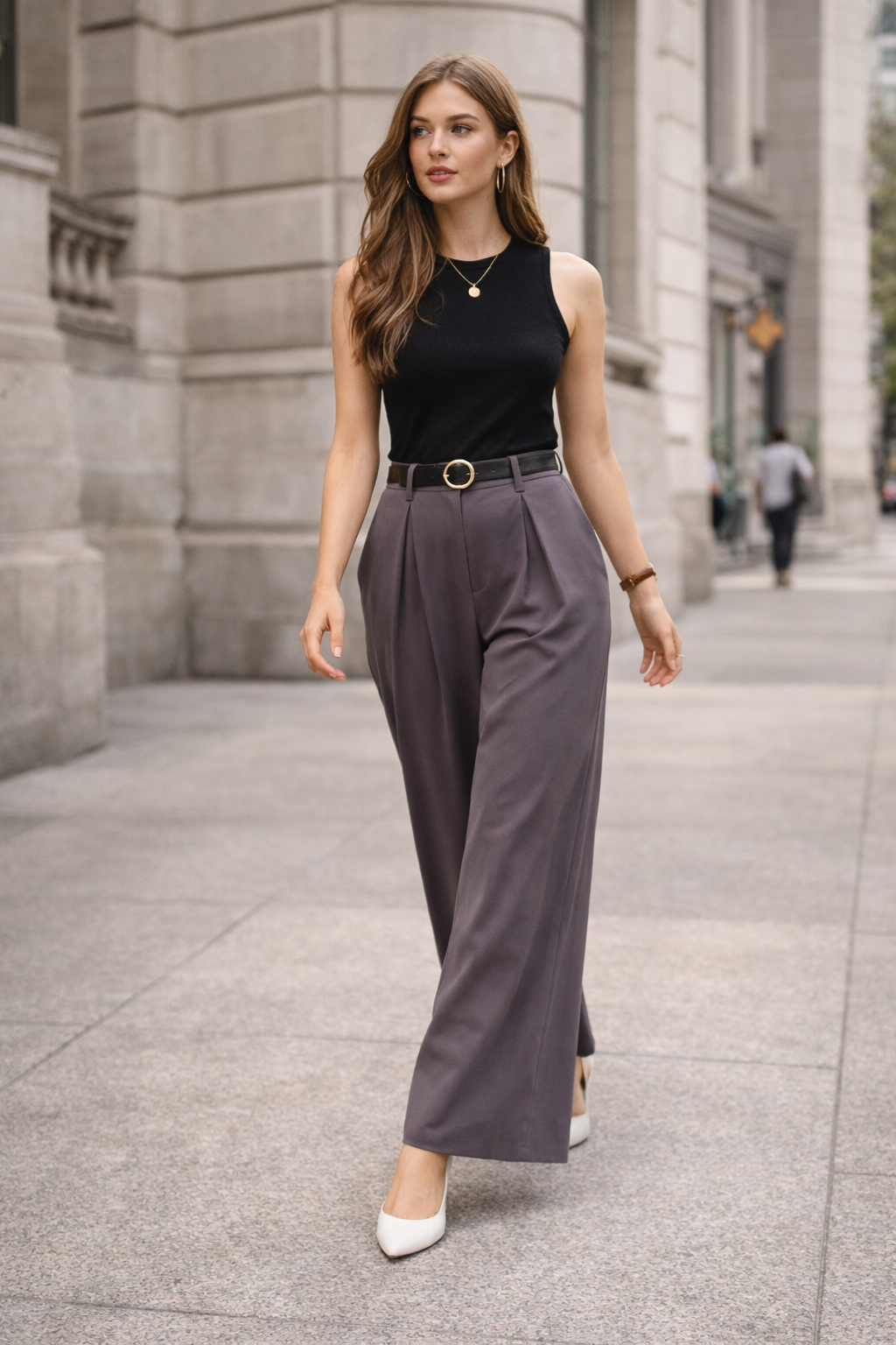 Pair with a fitted top or tucked-in shirt and heels for a sharp tailored look, or style with a minimal knit and flats for effortless smart-casual elegance.
